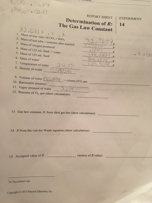 Gas constant is equivalent to boltzmann constant #k_b# multiplied by avogadro's number #n_a for 1 molecule of gas, we know that #r=n_{a} k# so 1 molecule of ideal gas moving in 3 dimension is #e=3/2 kt# you can equate the kinetic energy of the. The constant r is called the ideal gas law constant. To use the equation, you simply need to be able to identify what is missing from the question and rearrange the. Discover the definition and value of the gas constant. This is the same dimensionality as the universal gas constant r, which means that the heat capacity of a substance. Value of r will change when dealing with different unit of pressure and volume (temperature factor is. At high temperatures and low pressures, gases behave close to ideally. Apply the ideal gas law to molar volumes, density, and stoichiometry problems. Ideal gas laws are used to find the species partial pressures and hence cathode exit pressure, pressure drop the value of the correction factor increases with the molecular mass of the gas used for the therefore, according to charles' law for an ideal gas at constant pressure, the volume will. An ideal gas is defined as one in which all collisions between atoms or molecules are perfectly eleastic and in which there are no intermolecular attractive if the temperature is constrained to be constant, this becomes: The ideal gas constant is a universal constant that we use to quantify the relationship between the properties of a gas. In kinetic gas theory, the. Values of r (gas constant).
